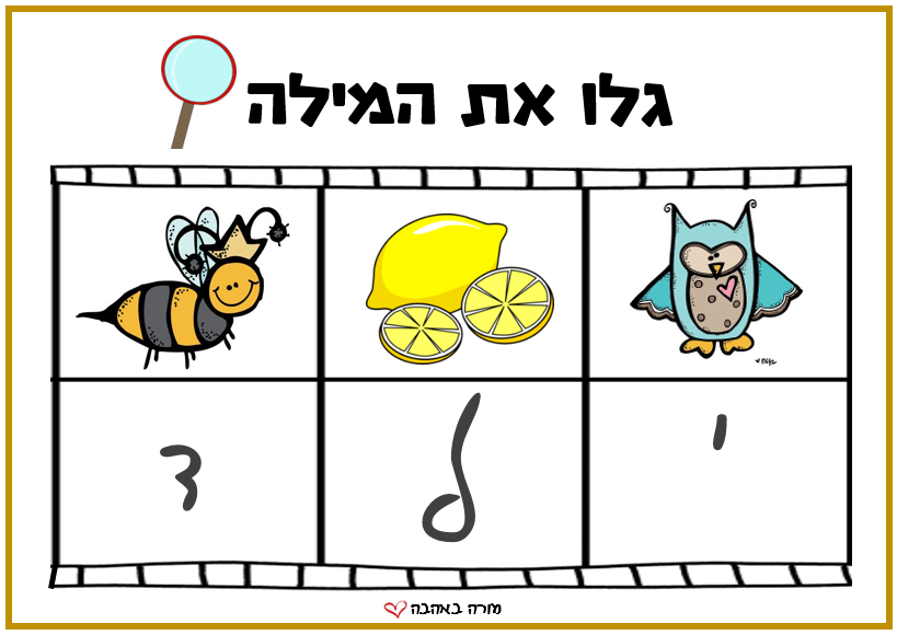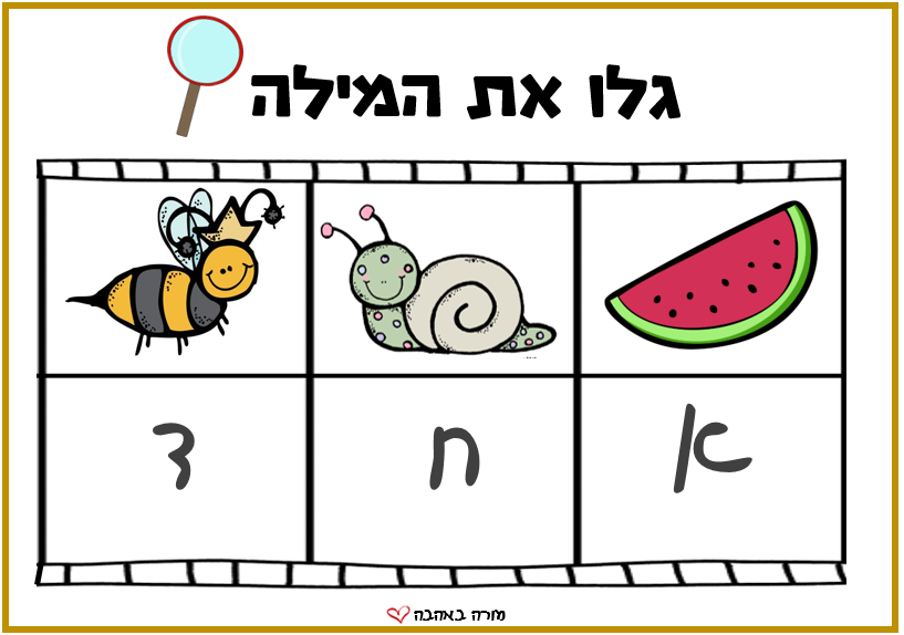 9. "המילה היומית"- אפשר בכל בוקר לתלות לילדים את "המילה היומית". הילדים צריכים לכתוב את האות הפותחת של כל מילה ולגלות מהי המילה היומית".