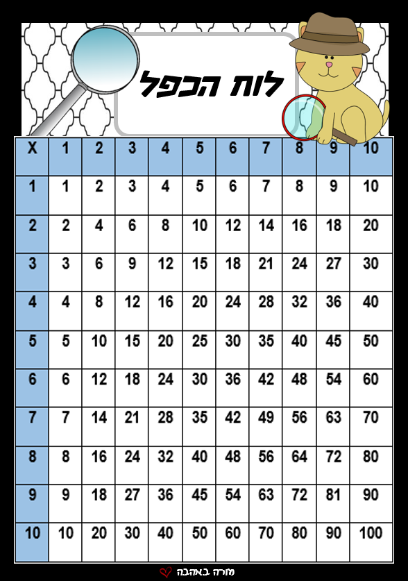 ממליצה להגדיל את לוח המאה ולוח הכפל כדי שיתאים לתלייה בכיתה.